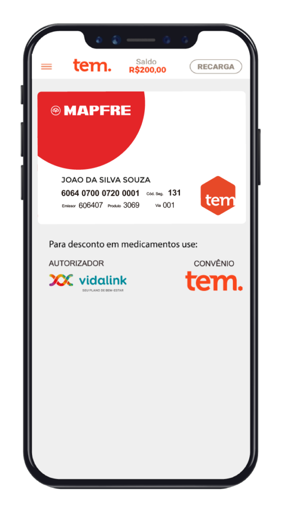 e recarregue seu MAPFRE Cuidando de Você no APP