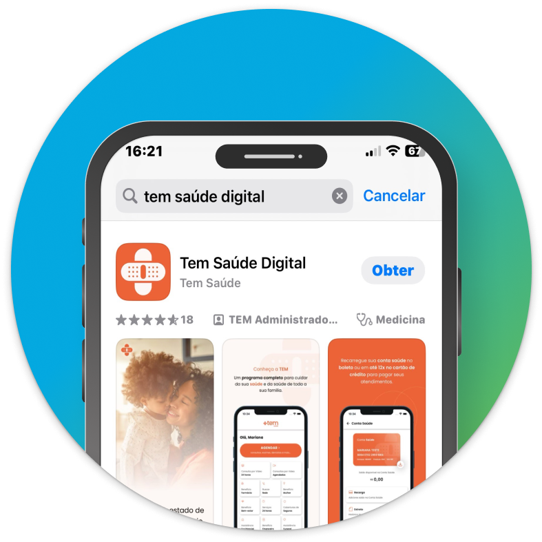 baixe nosso app ou acesse nosso site TEM Saúde e siga o passo a passo: